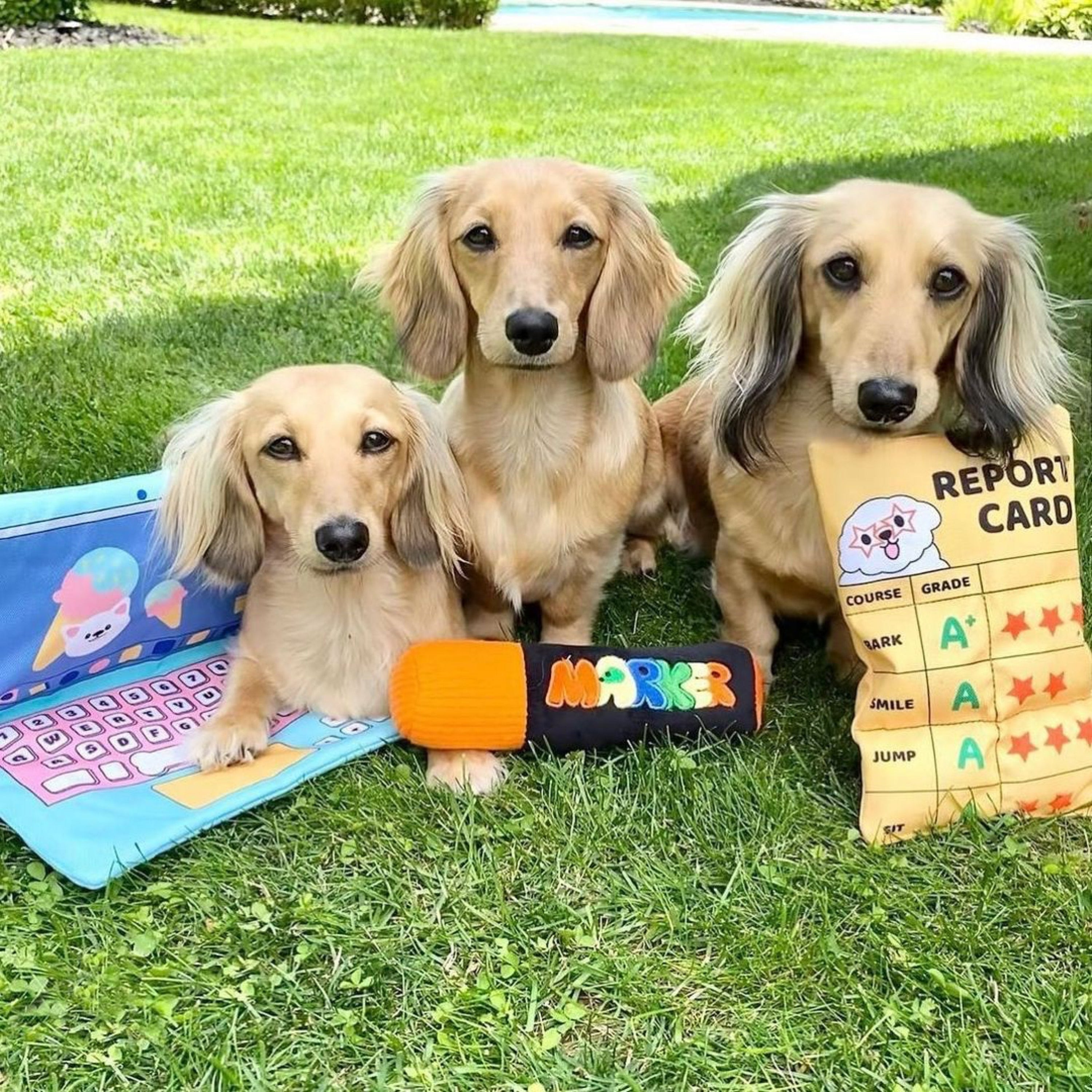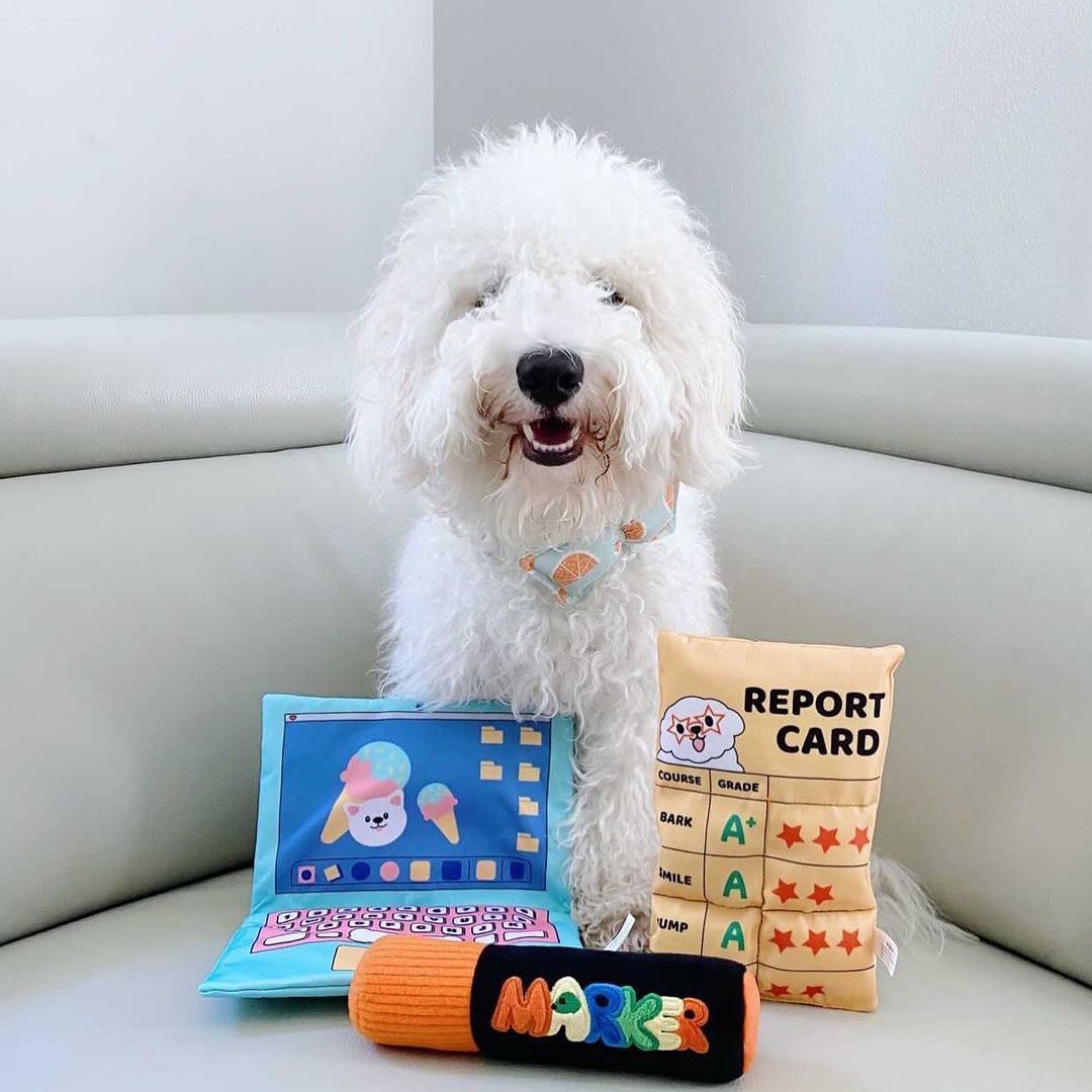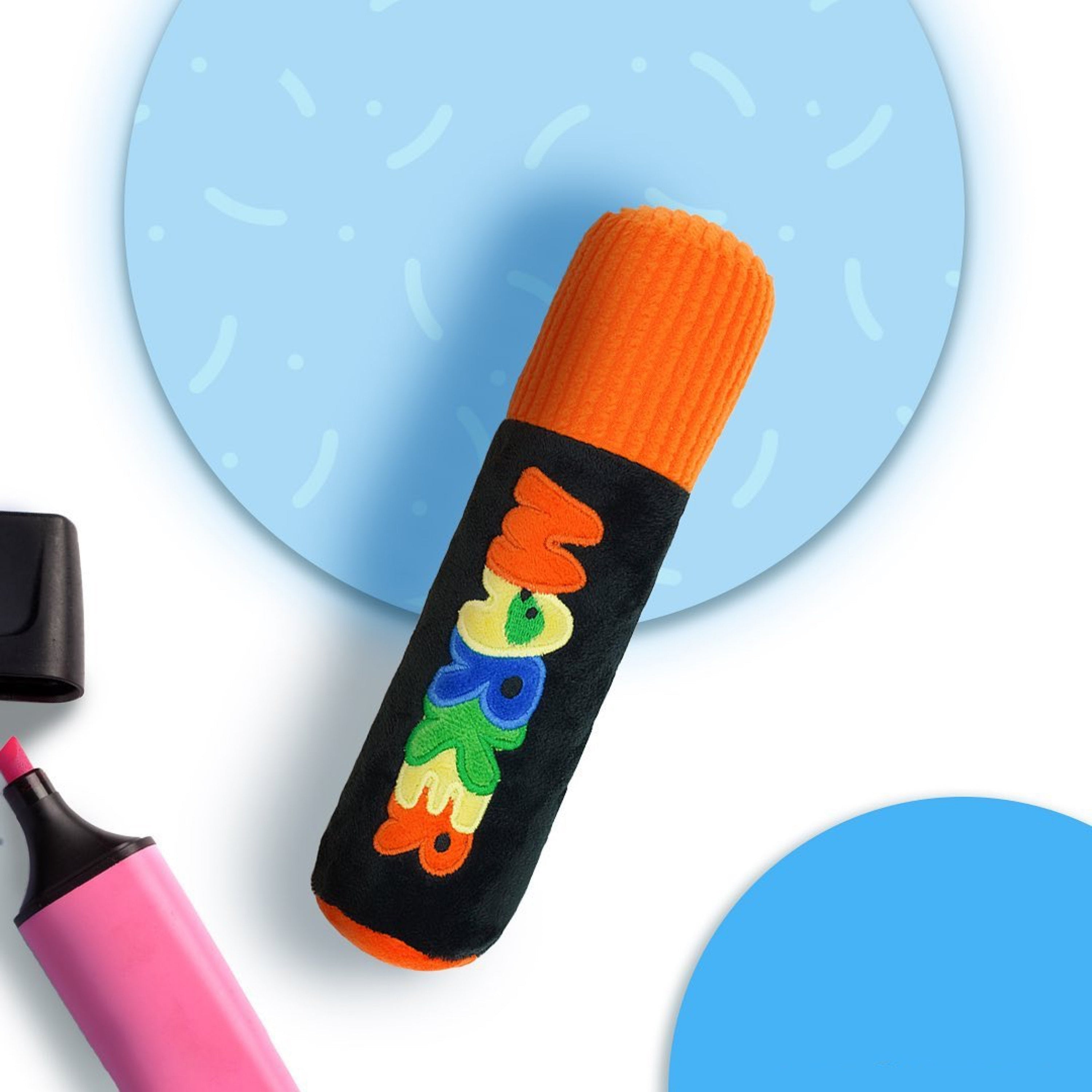 ボール投げのように遊んだり、噛み噛みして遊んだり、柔らかな生地感で安心して楽しく遊べるマーカーモチーフのおもちゃです!