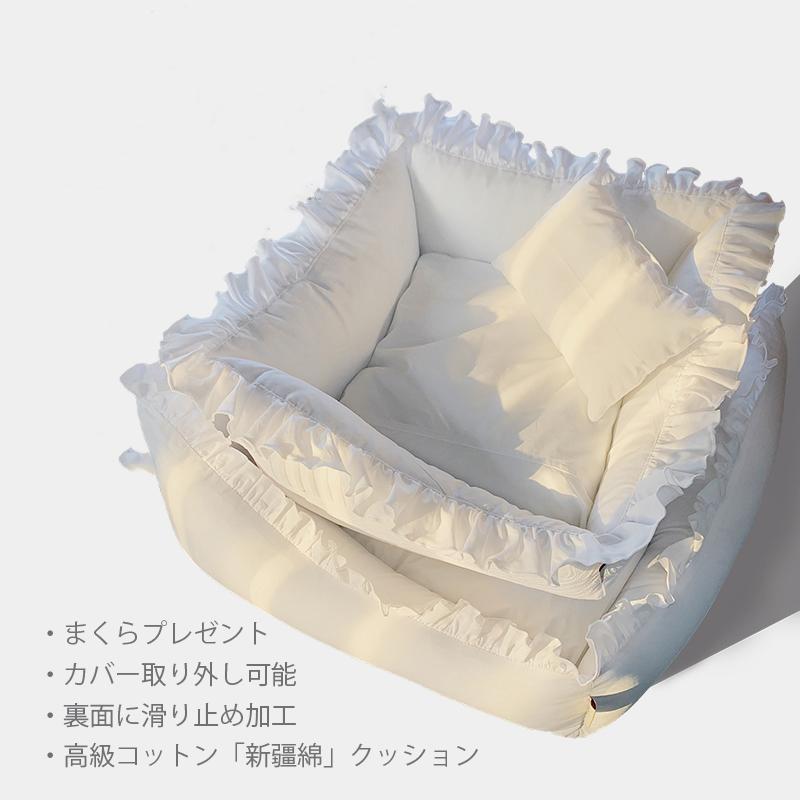 派手すぎないシンプルなフリルが可愛らしいクッションベッドです。